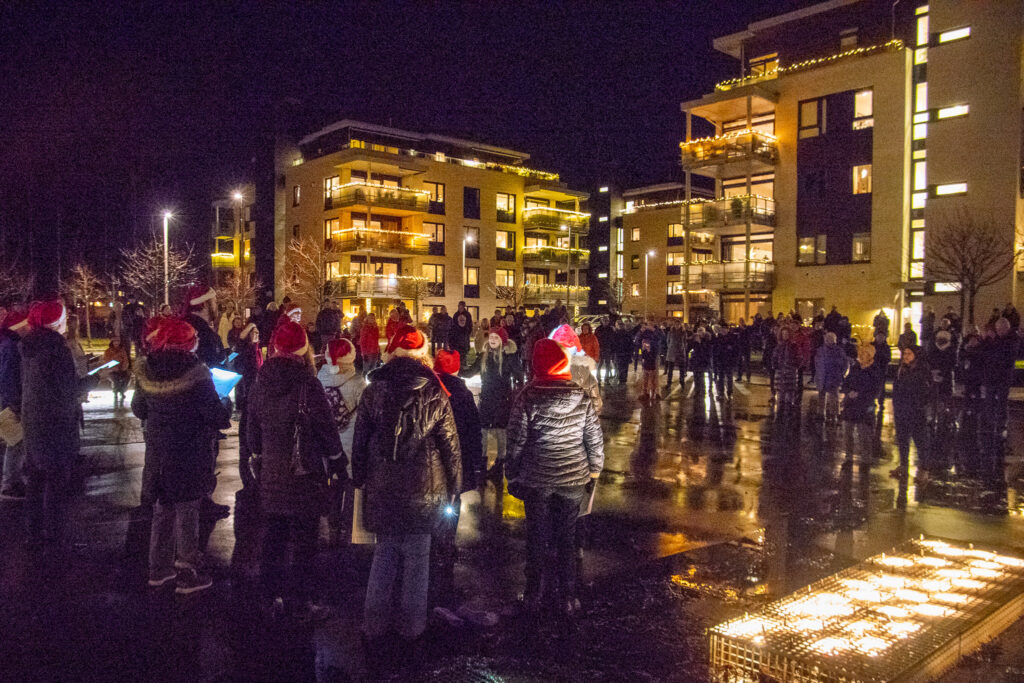 , ett på Snarøya og ett i Rolfsbukta, tirsdag 15. desember 2020. Endelig fikk vi framføre julesanger igjen, i trygge uteomgivelser, til glede for oss selv og publikum!